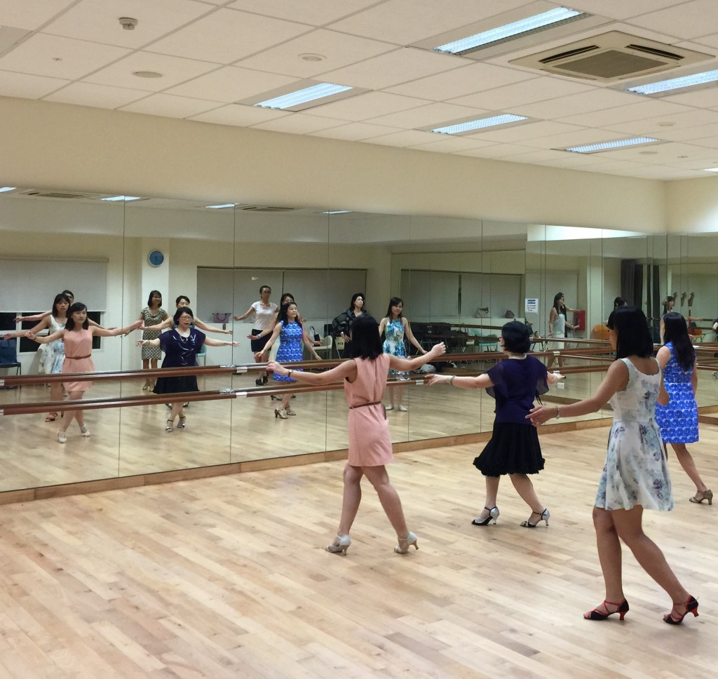 Enables ladies to pursue their love of dance and music in the styles of Cha-Cha, Rumba, Waltz, Tango, Quickstep, Jive, Samba, Salsa, Merengue, etc, without needing a partner. At the same time, this helps the ladies keep physically fit, and mentally active whilst enjoying this form of dancing. The elementary levels are suitable for beginners with or without any dance background.